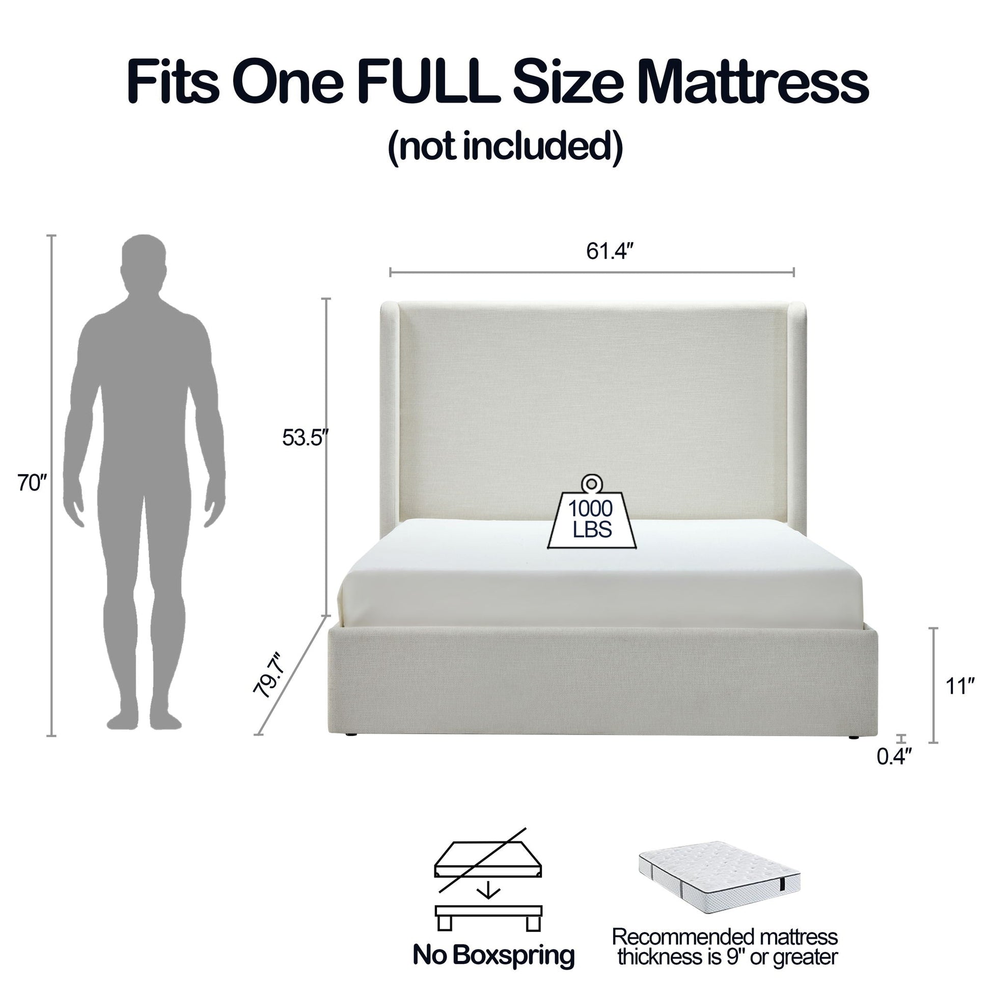 - Statement Headboard: 53.5" tall wingback design creates a bold visual centerpiece