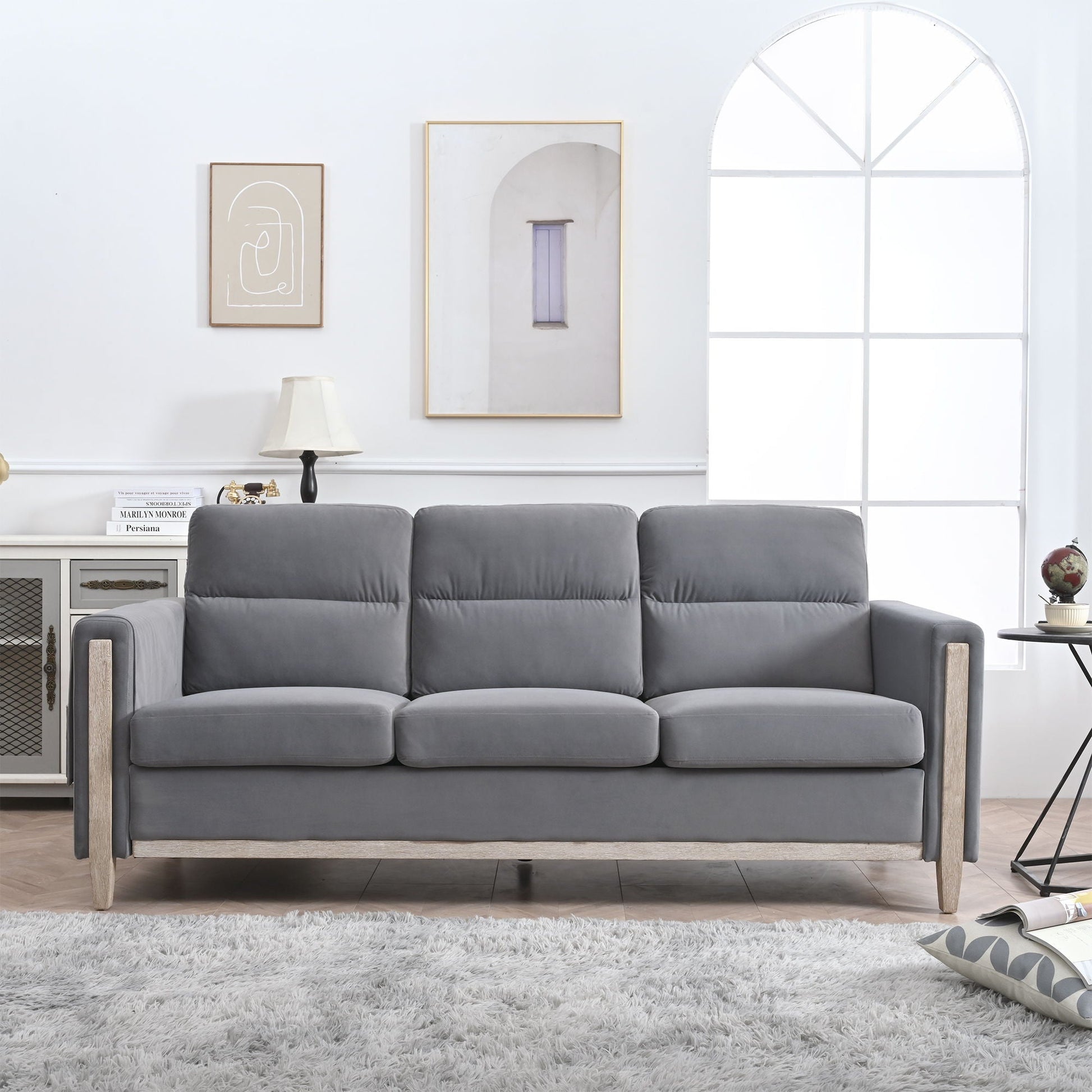 Comfortable Solid Wood Three-Seater Sofa, Soft Cushions, Durable And Long-Lasting, 79.5" Sofa Couch For Living Room - Gray