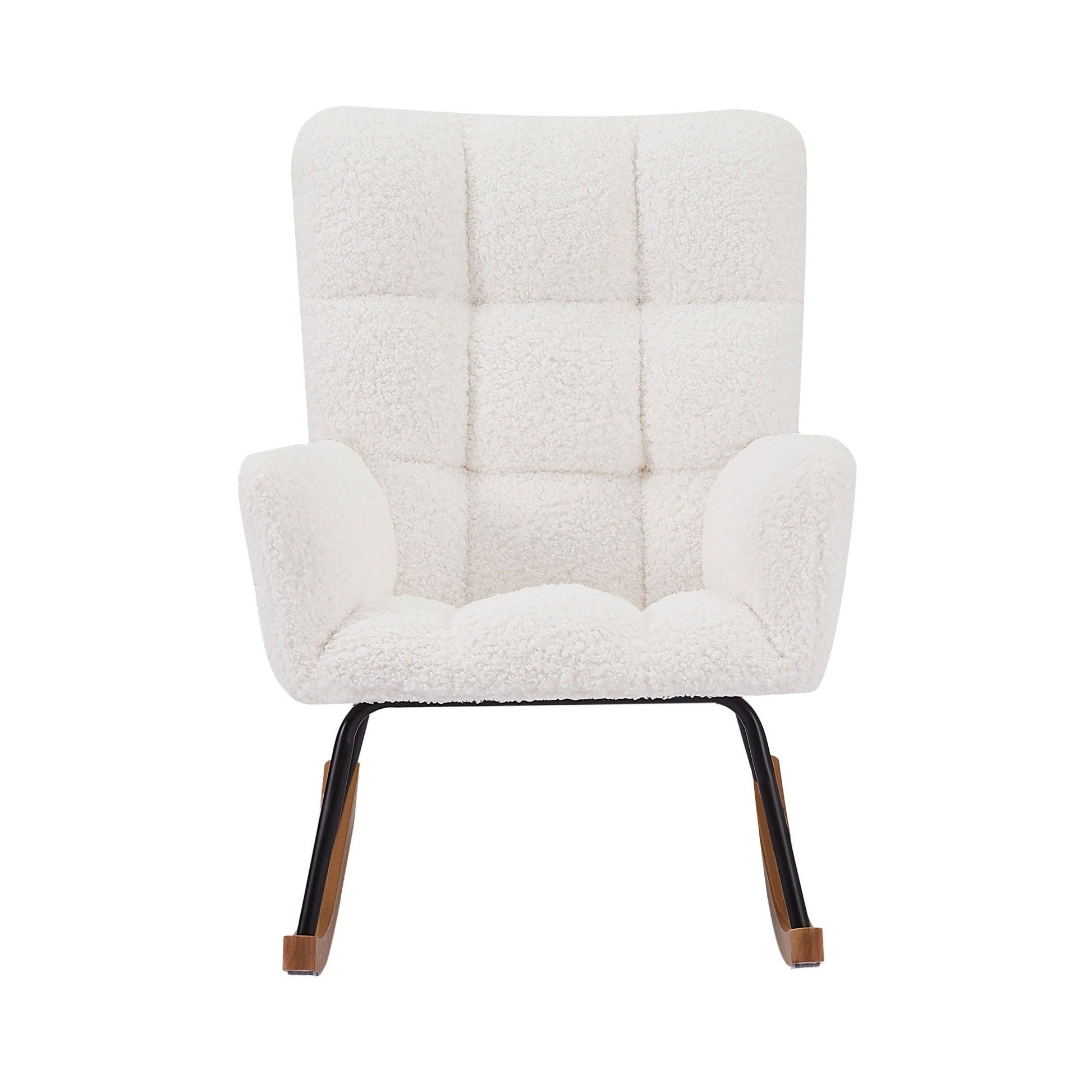 Comfy Upholstered Lounge Chair Rocking Chair With High Backrest, For Nursing Baby, Reading, Napping - Off White