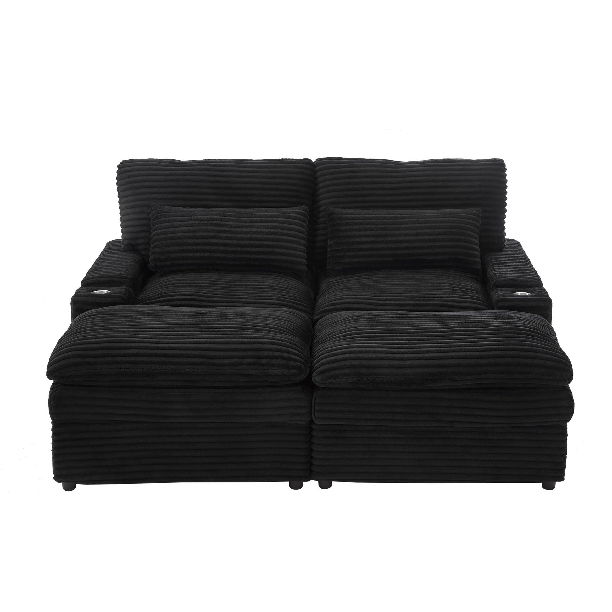 Convertible Loveseat Sofa With Storage, USB Ports, Cup Holders - Black