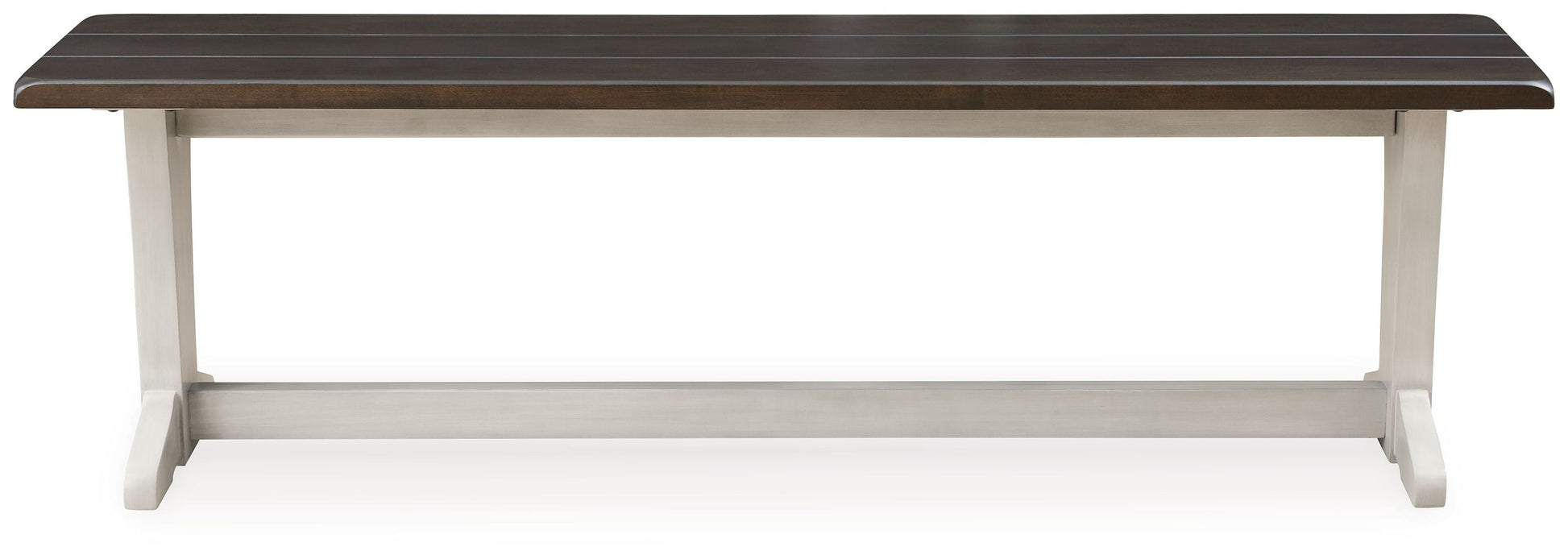 Make a farmhouse-inspired statement with this dining bench. It's beautifully crafted with a clean, classic two-tone finish and a thick planked effect. Making room for the whole family, this bench sports a casually comfortable vibe.