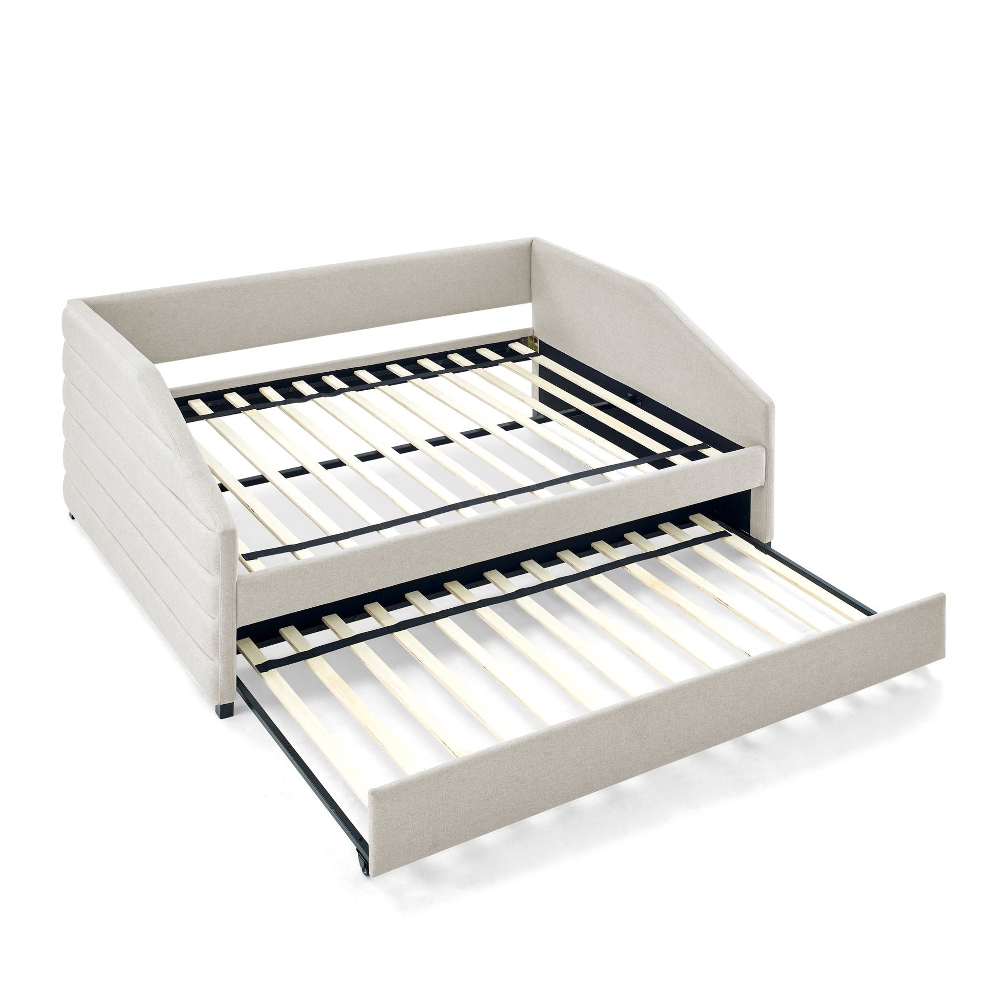 Twin Size Elegant Daybed With Trundle Upholstered Tufted Sofa Bed - Beige