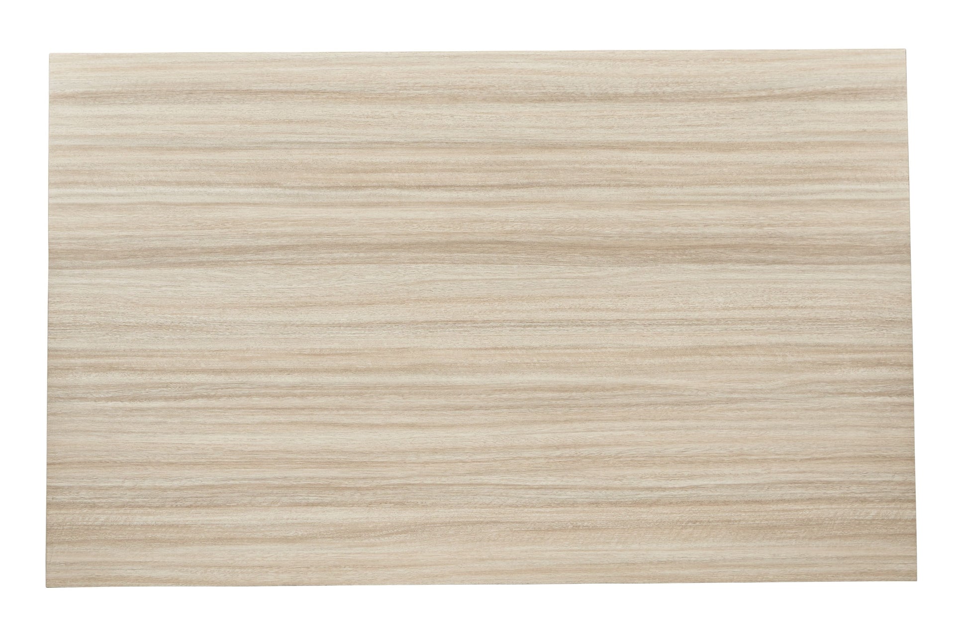 - Melamine top with replicated exotic wood grain in light tan, natural wood coloration
