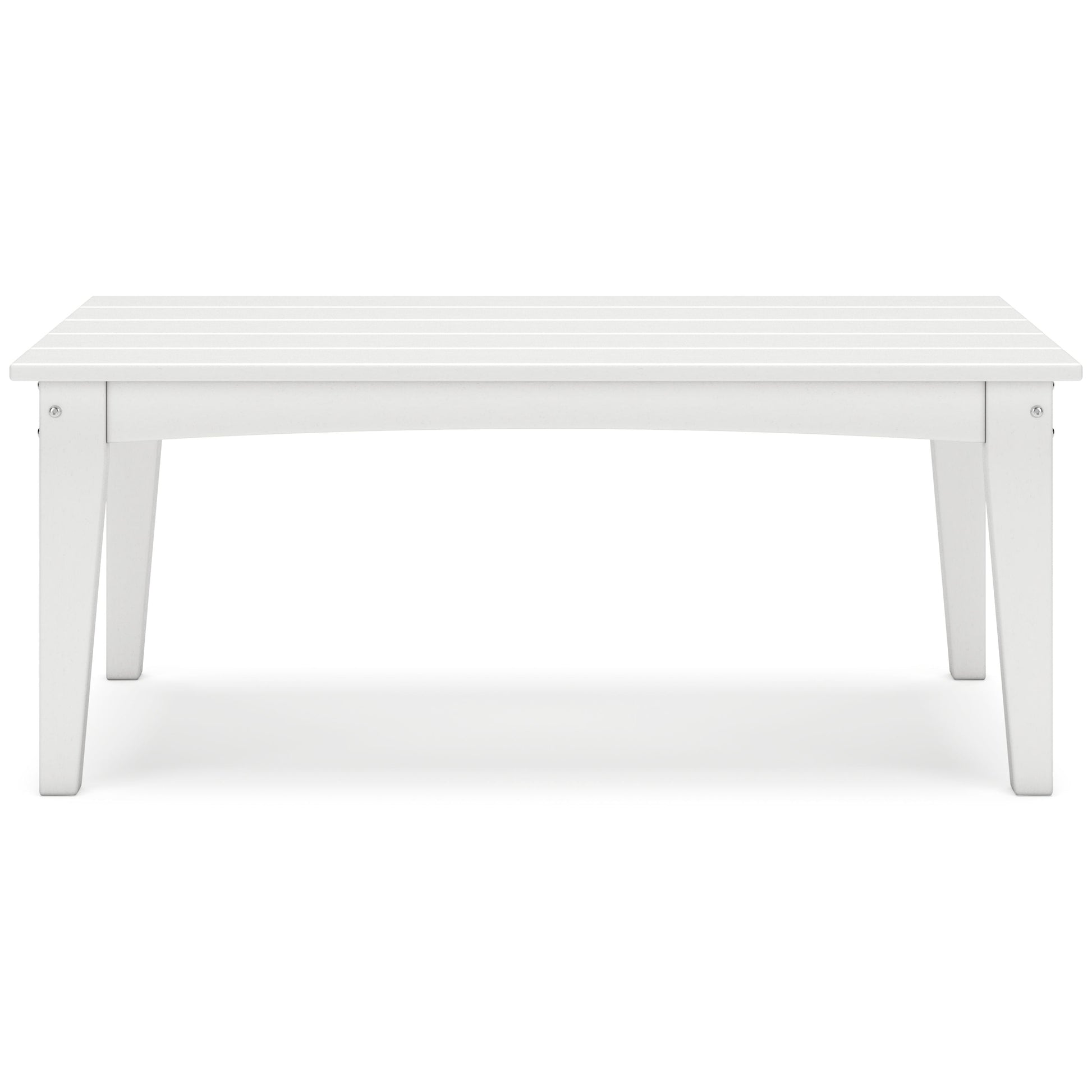Drift into outdoor entertainment bliss with this coffee table. Dressed in a bright white for a fresh feel, it weathers sunny summer days and cozy winter nights with durable MEGA TUFF™ HDPE material. When it comes to form and function, the table's rain-shedding slatted design simply goes with the flow. Use it to hold outdoor decor, drinks or snacks.