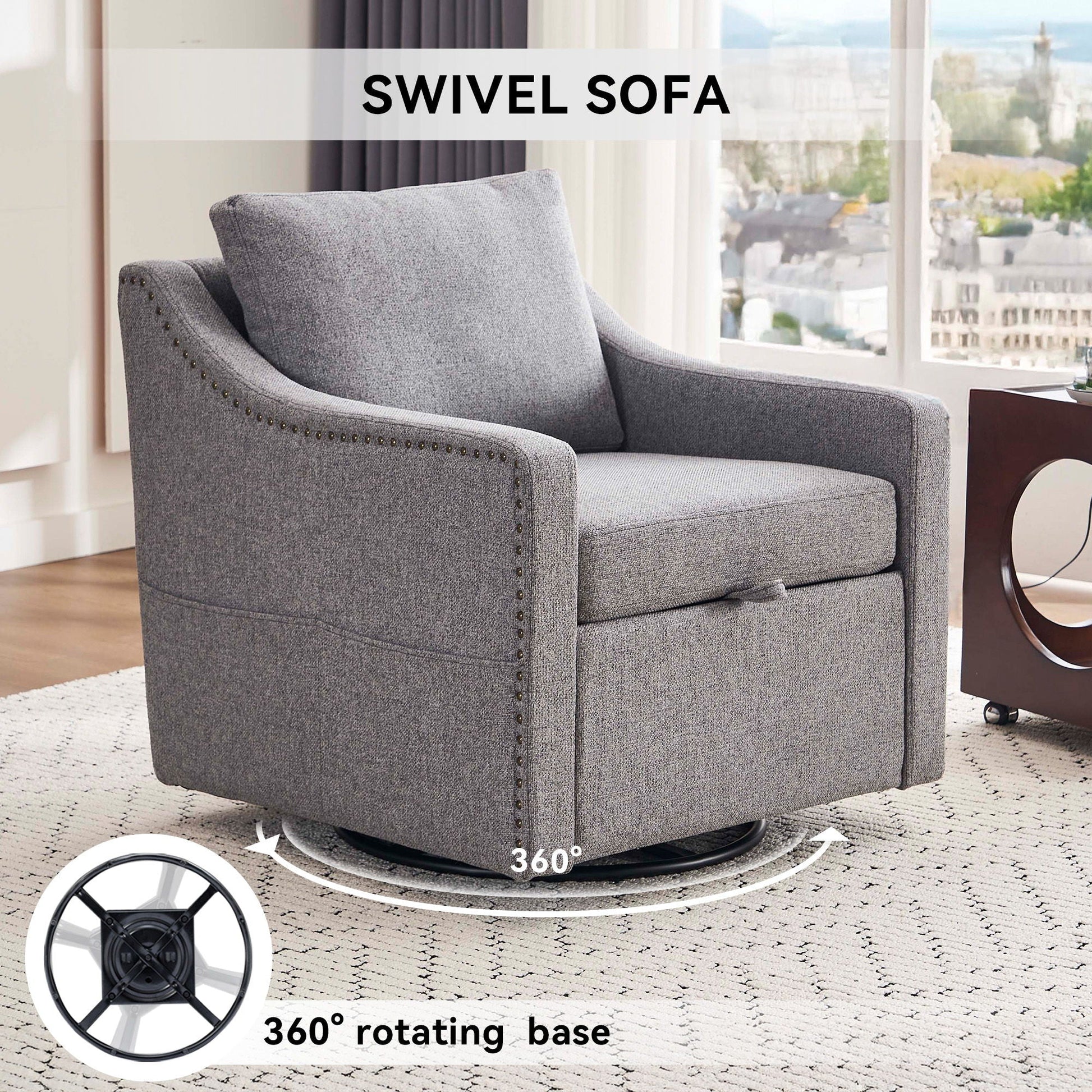 Linen Fabric 360° Swivel Accent Chair With Upholstered Back Pillow And Armrest Rivets - Gray