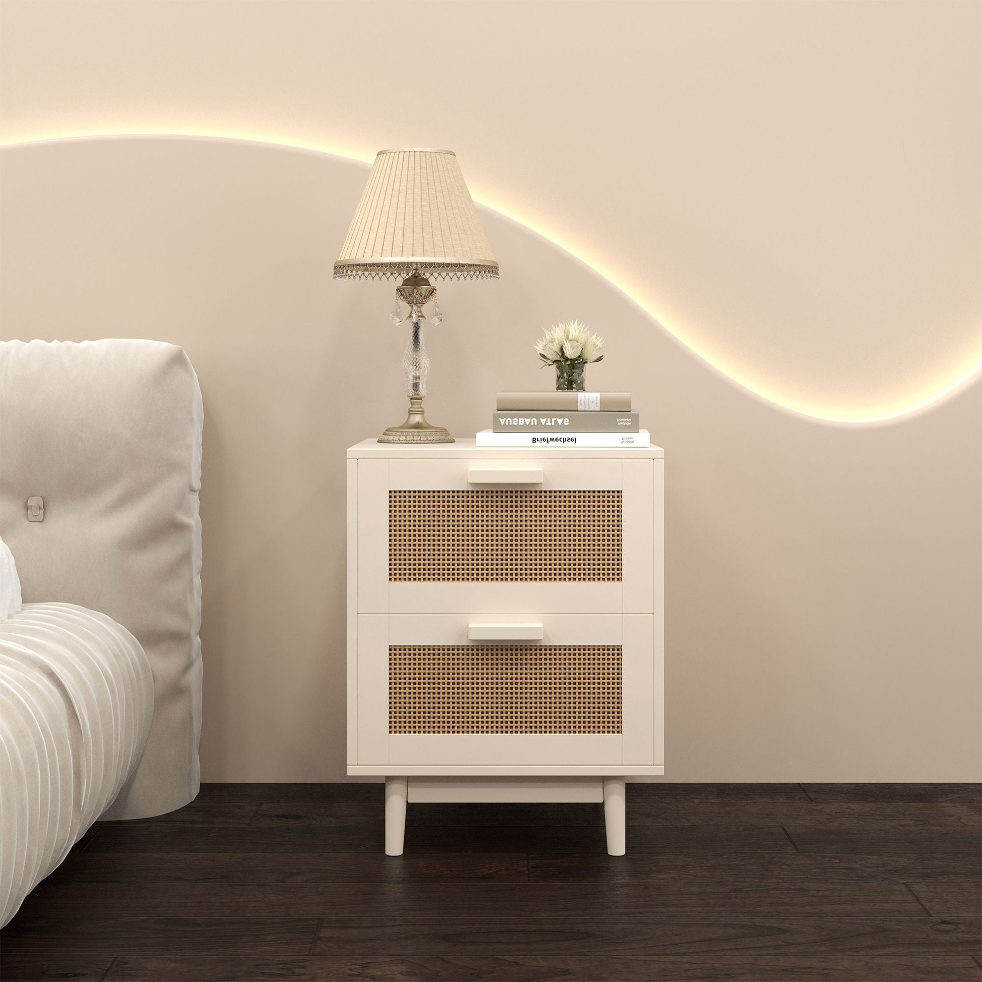 Nightstand With 2 Drawers, Storage Side Table For Bedroom - Antique Natural / Rattan