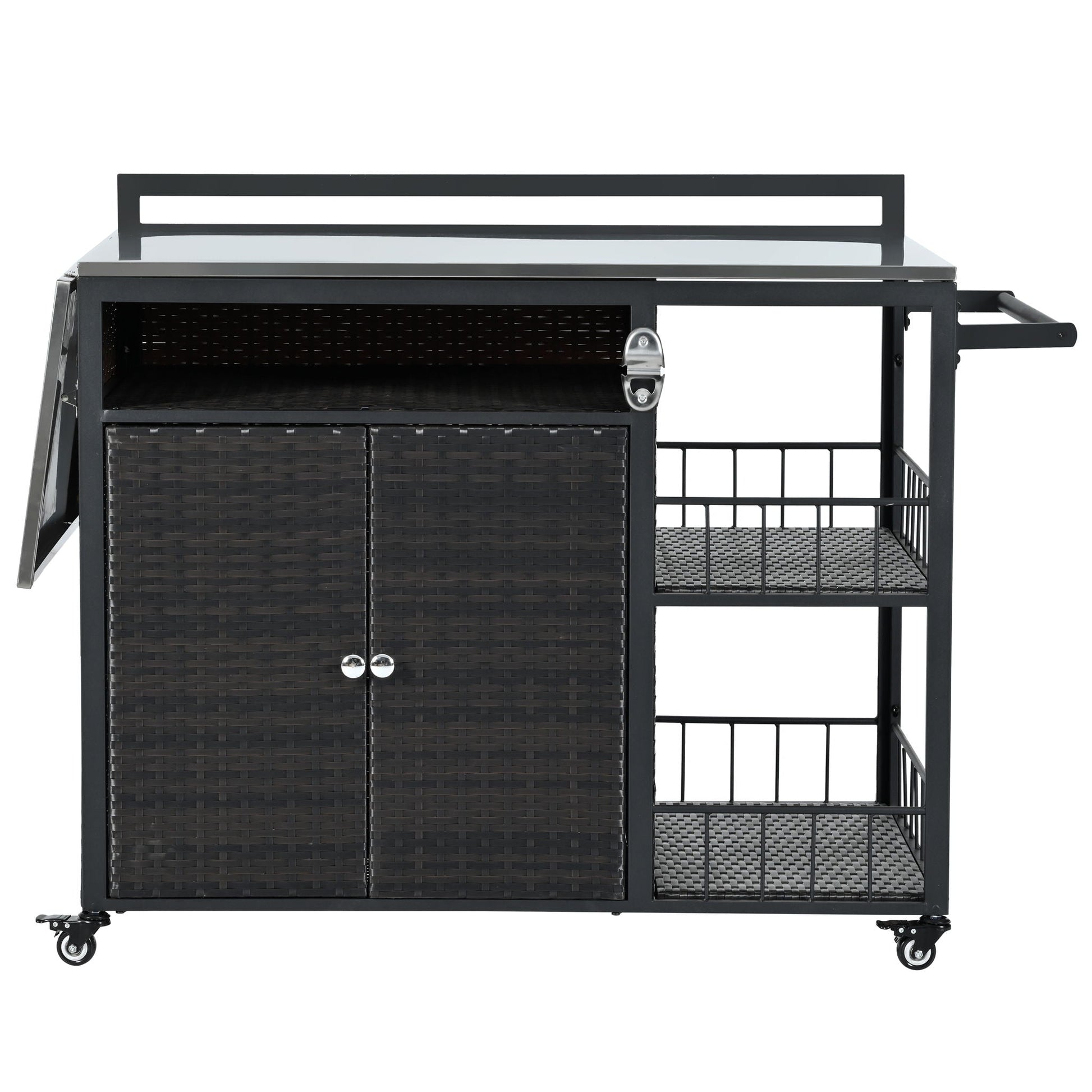Outdoor Kitchen Island With Storage, Cooking Station, Grill Cart, Foldable Tabletop, And Bottle Opener - Dark Brown