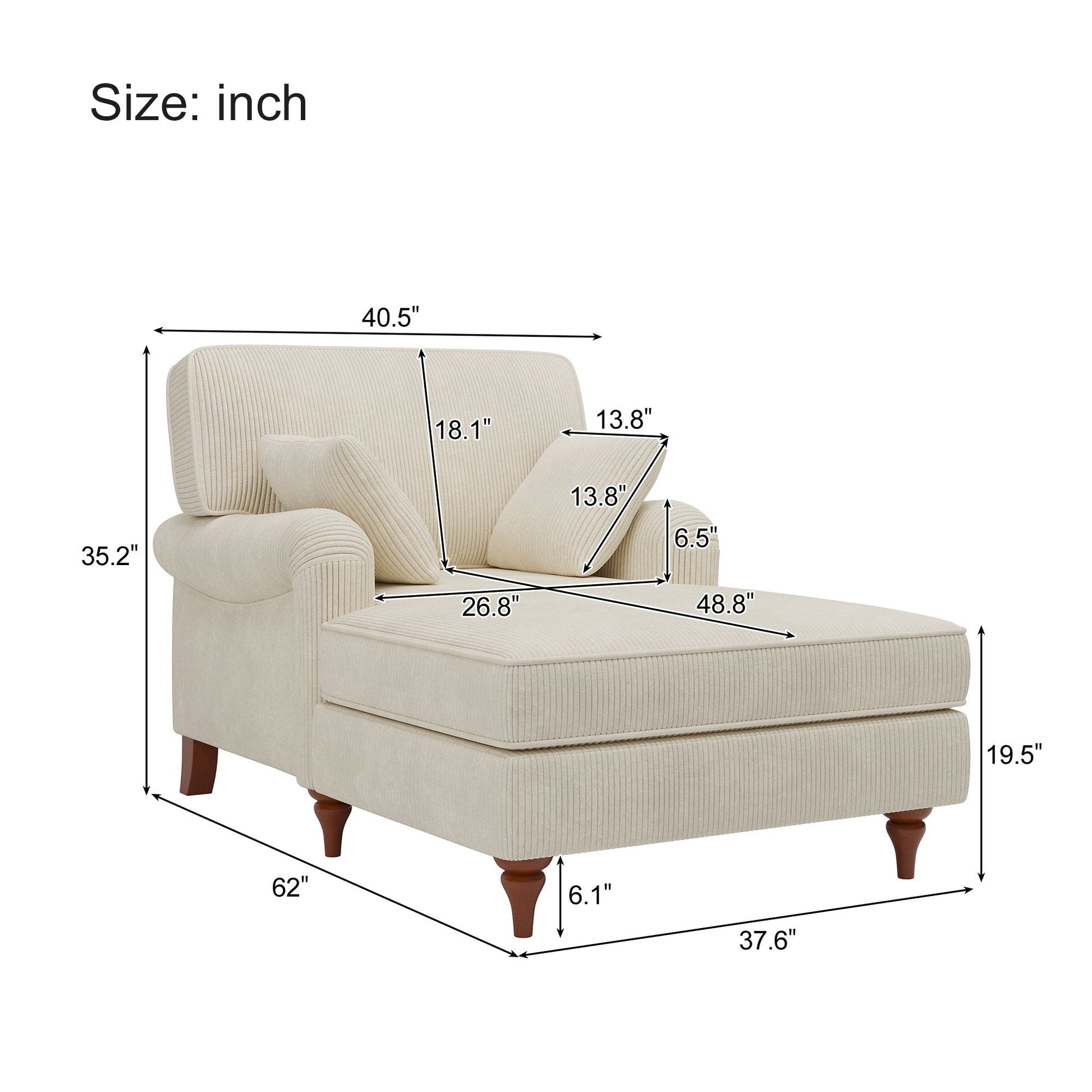 Oversized Chaise Lounge Chair Indoor With 2 Comfy Pillows Rolled Arms Corduroy Fabric Sleeper Sofa Chair For Living Room Bedroom - Beige