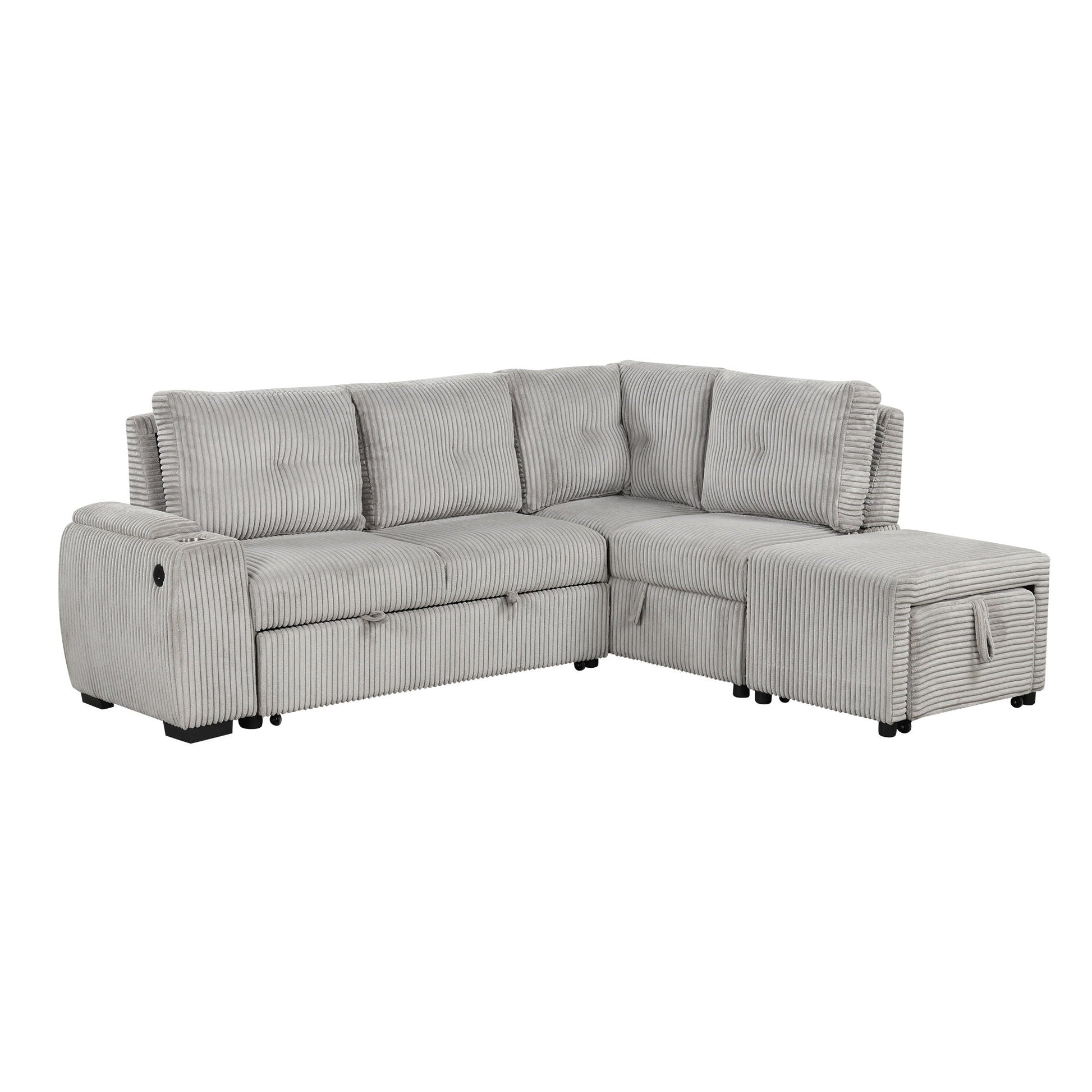 Sectional Sofa Pull Out Sofa Bed L - Shaped Sofa With Movable Ottoman And Stool, Large Storage Space, A Cup Holder, And 2 USB Ports For Living Room - Light Gray