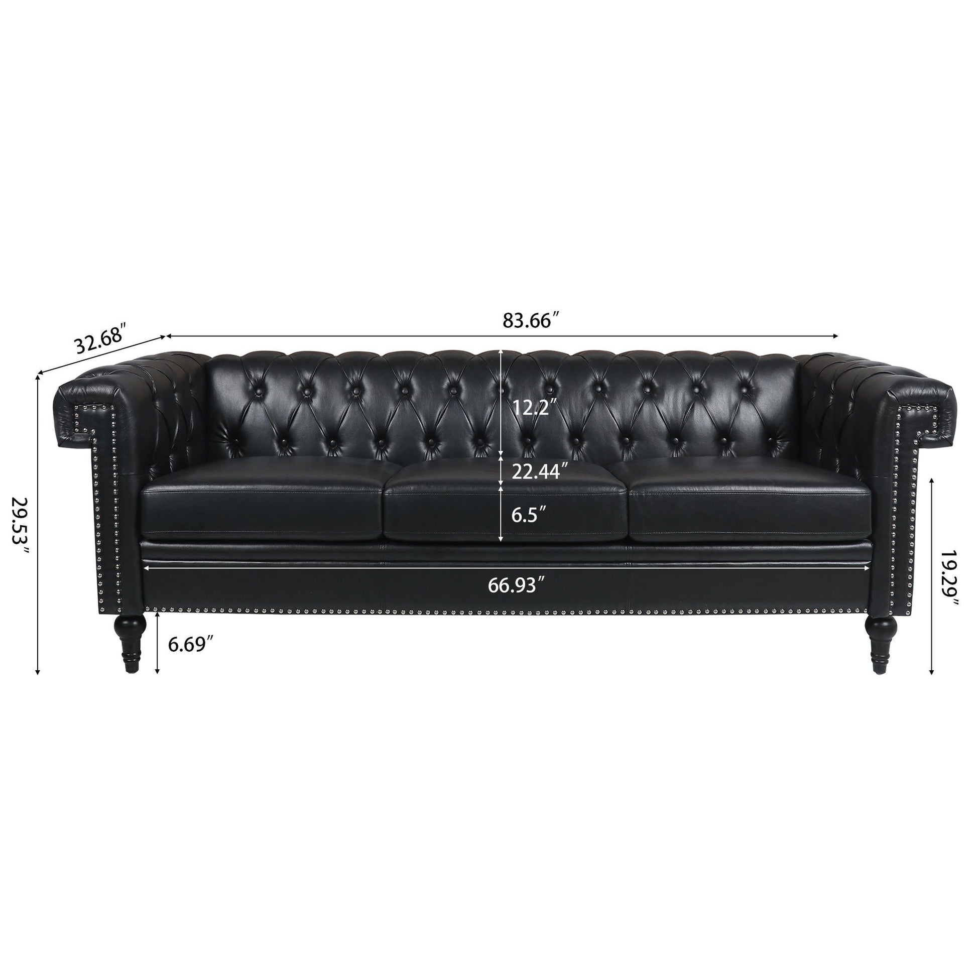 83.66" Width Traditional Square Arm Removable Cushion 3 Seater Sofa - Dark Brown