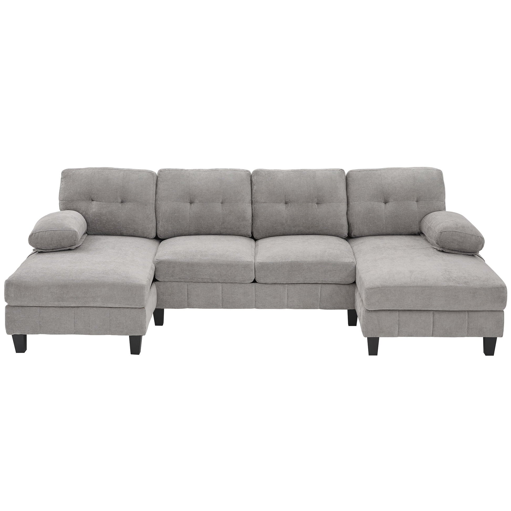 U Shaped Sectional Sofa Couch With Dual Chaise Lounges, Storage Pockets And Armrest Pillows - Gray
