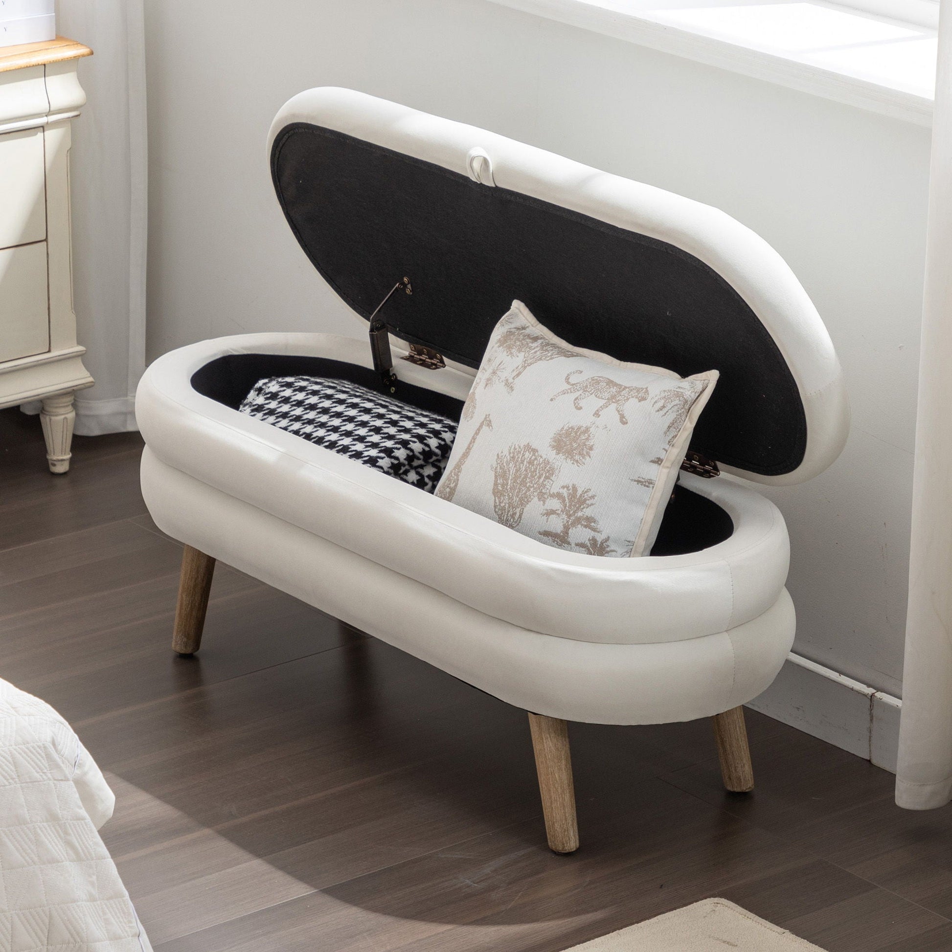 Velvet Fabric Storage Bench With Wood Legs For Living Room And Bedroom - Ivory