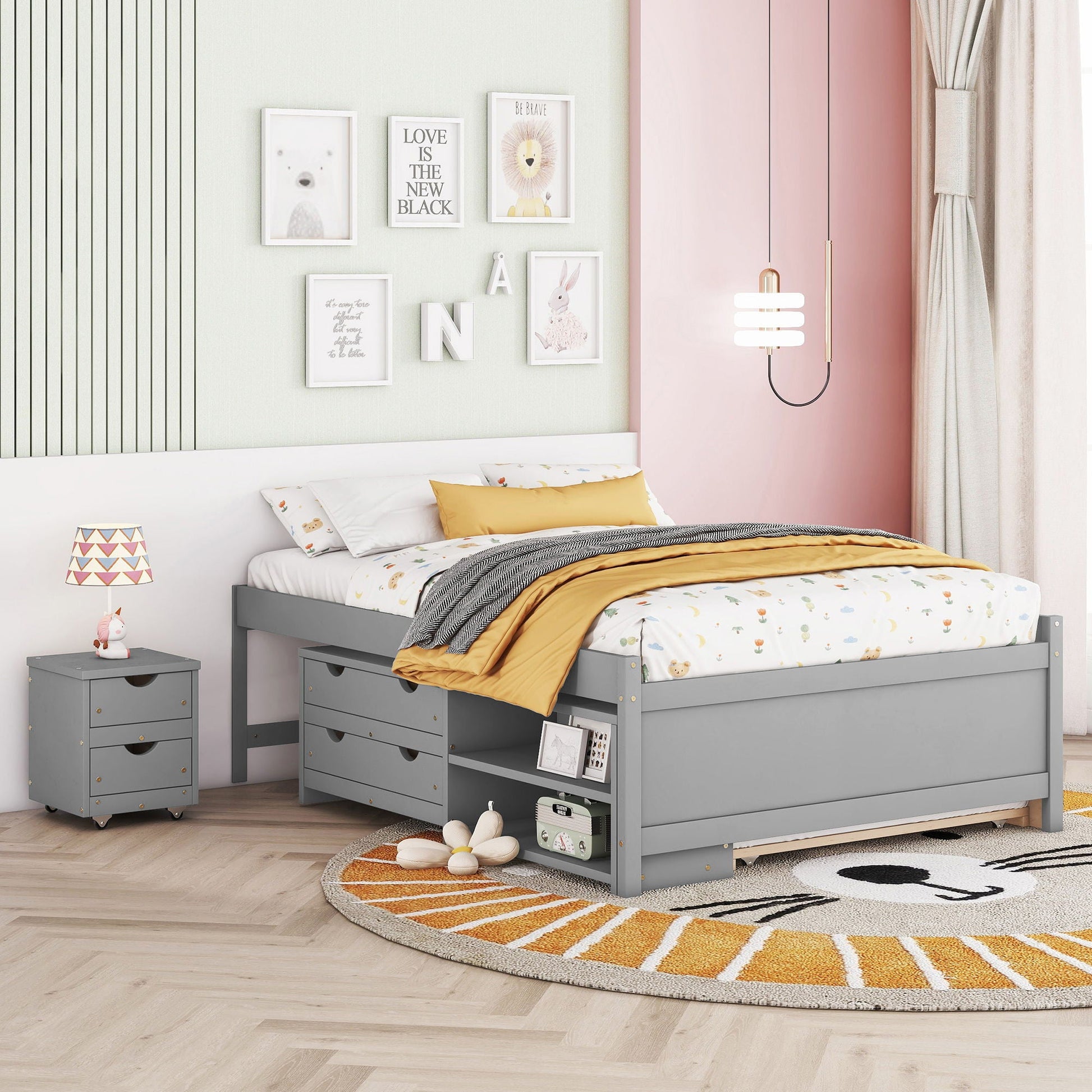 Versatile Full Bed With Trundle, Under Bed Storage Box And Nightstand - Gray